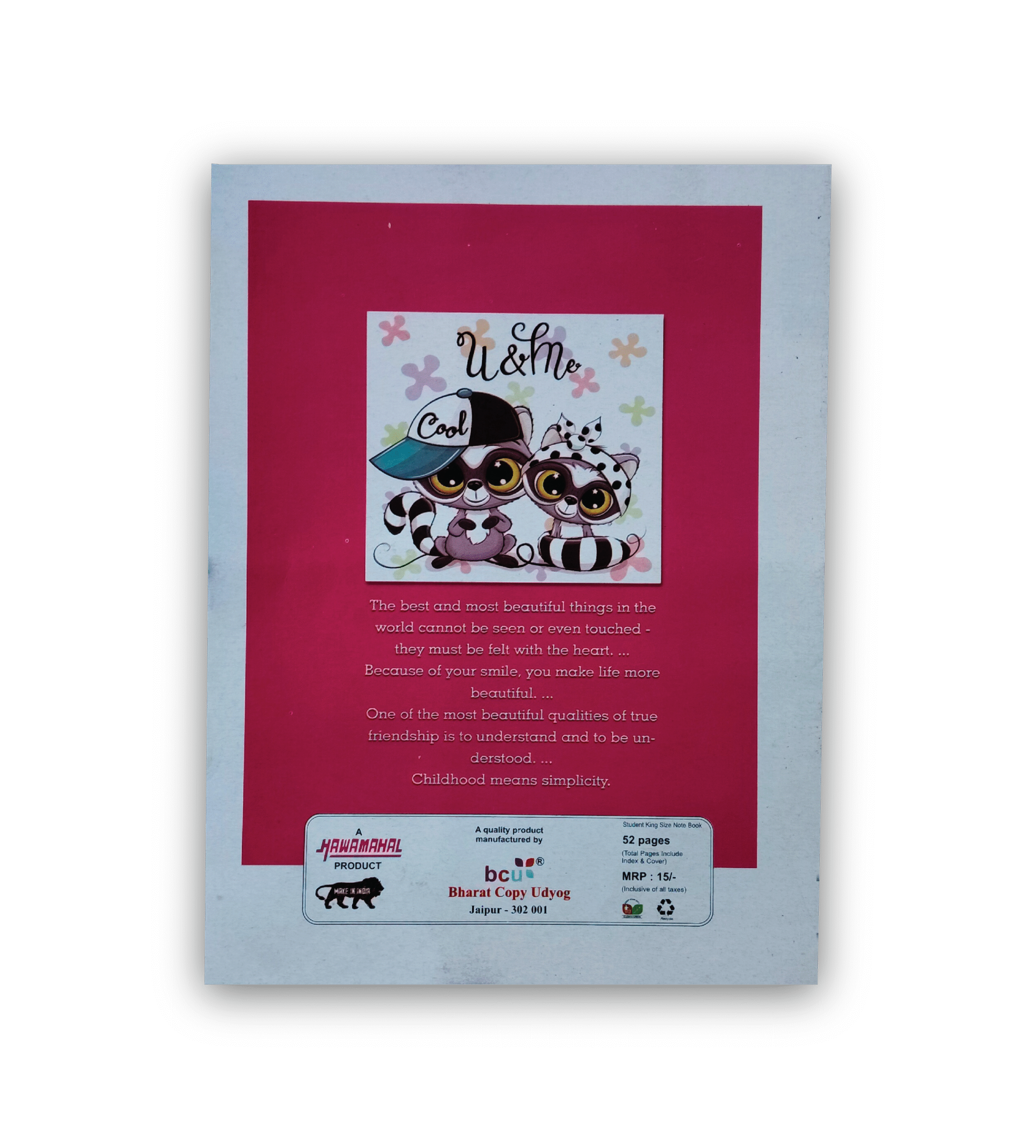 The back cover is made using 250 GSM gray board (Laminated), saving it from any accidental creases. The stitching and binding is done with Saddle-stitch, meaning it sits flat and is extra hardy. The Daksh notebook is a perfect amalgamation of quality, practicality and everyday use, and is made in India for the school-going child, looking for back to school kind of stuff.